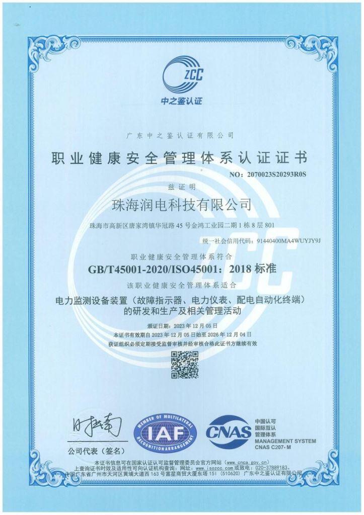 IS018001職業(yè)健康認(rèn)證證書(shū)